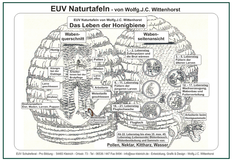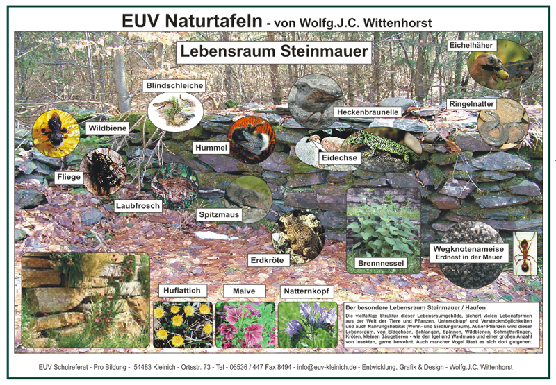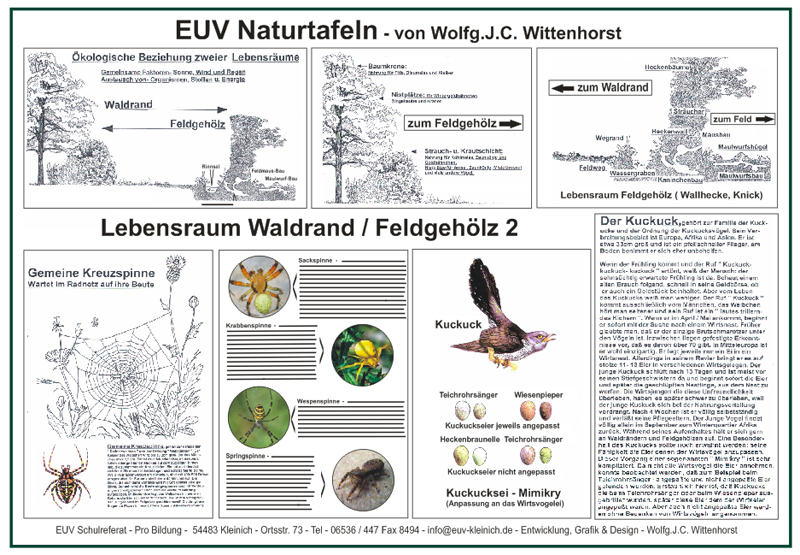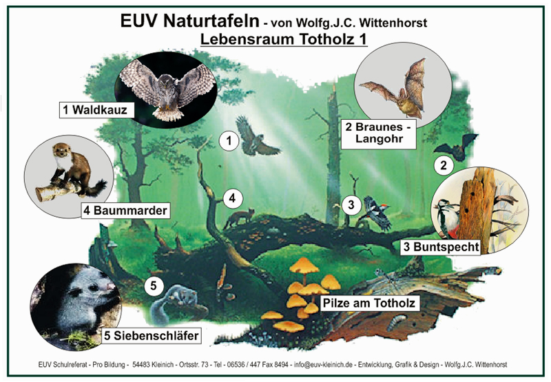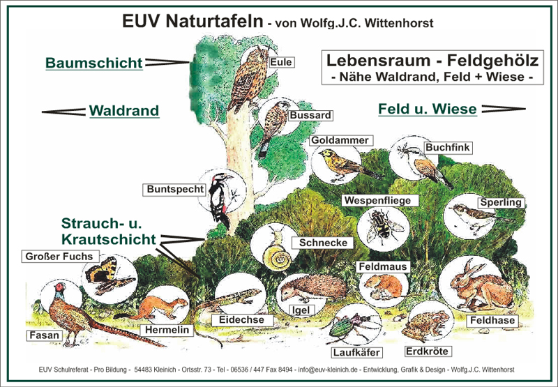 In einem Rundkurs von 1,3 km Länge informieren große Bildtafeln über das Ökosystem Wald. Auf zusätzlichen Schildern werden die einheimischen Baumarten beschrieben, sowie weitere interessante Informationen über verschiedene naturkundliche Themen vermittelt. An einem Steinhaufen, einer Trockenmauer, einem Reisighaufen und einem Ameisenhügel können Kleintiere und Insekten beobachtet werden. Ein Feuchtbiotop bietet Lebensraum für Frösche, Libellen, Vögel und andere Tiere. Auf weiteren Bildtafeln können Stationen der Laufelder Urgeschichte verfolgt werden.